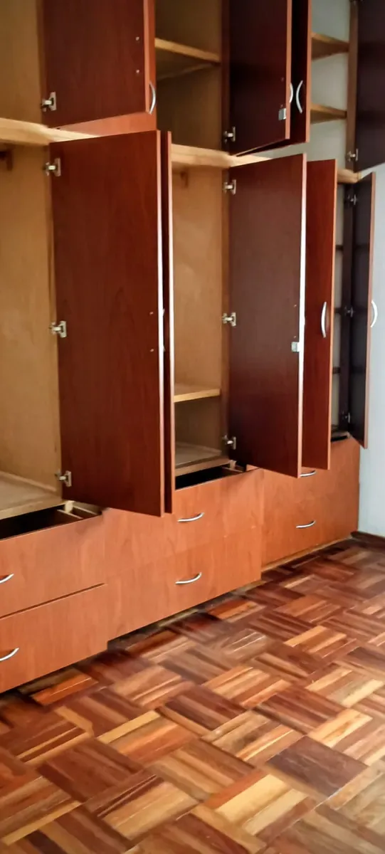 Cocina semi integrado con placares bajo y sobre mesada con salida al patio.
